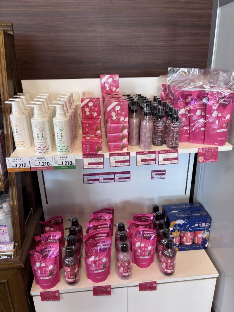 シャンプーコンディショナーボディソープは備え付けで3種類(ハチミツと桜と豆乳)がありました。